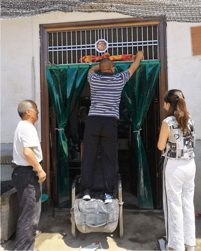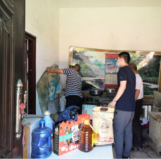 西安水建集團(tuán)副總經(jīng)理吳振江為幫扶對(duì)象擦拭門上的灰土